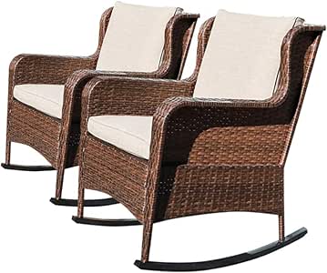 Some patio rocking chairs arrive in multiple pieces and require assembly; check the specific products information to make sure you are prepared to put it together before you order. This set comes with a cover that keeps your outdoor patio furniture dry and safe from the elements. Handcrafted All-Weather Wicker - The Faux Rattan Gives The Look And Texture Of Natural Rattan With The Durability And Uv Resistant Of Resin. The olefin fabric is a soft woven fabric which is durable, fast-drying and easy to clean. Outdoor Chairs: 26.8" D X 25.6" W X 34.6" H, Accent Table: 15.7" D X 15.7" W X 15.7" H. The Small Patio Furniture Set Is The Perfect Laid-Back Spot To Spend Your Afternoon And Enjoy A Cup Of Coffee Or Drink With A Friend.. Great Addition To Any Patio The 3 Piece Wicker Patio Set Is Perfect For A Small Deck Or Balcony, And Serves As A Relaxing Place To Enjoy Time Outdoors. In mythology, the Muses were nine goddesses who symbolized the arts and Modular furniture is built to move with you, adaptable and expandable. With the additional striped pillows this collection will be handsome on any patio. There is a wide array of patio rocking chair designs available, from iconic wood variations to steel-framed options. The curved arms and high back add support and comfort. Premium Olefin Cushions - Cushions Are Covered In Olefin Fabric And Constructed With A Soft Polyester Layer Wrapped Around A Thick Foam Core.