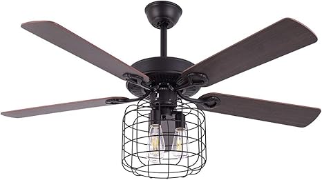 Modern Ceiling Fan with Light Remote Control,Indoor Industrial Metal Caged Ceiling Fan with Lights, Black Ceiling Light With Fan for Kitchen, Bedroom, Living Room, Dining Room(Black, 17INCH) AC/DC. fan ceiling steel lamps industrial plus visit light