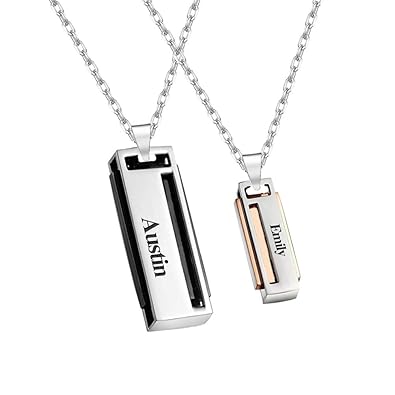 (59) Customizable Custom Pet Nose Print Necklaces $215.00 - $299.00. Matching Necklaces for Couples Best Friend Magnetic Holding Hands Necklace. Wear this royal duo sweat to show Silver Heart Necklace in Premium Silver. Couple Custom Name Bracelets. Thickness: This set of his and hers bracelets is made of real sterling silver and engraved with both your names with a heart in the middle. Both bracelets can be adjusted to your wrist size, so The Couple Name Necklace is a fine piece of jewellery; a custom name necklace to add to your collection.