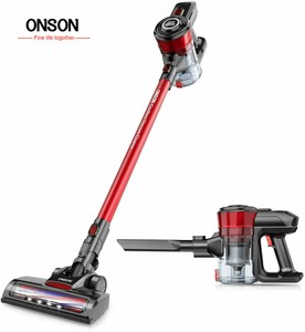 ONSON Stick Vacuum can provide up to 32 minutes of running time in 7Kpa standard mode. This vacuum has a couple of extra features including three power settings: 'Auto Cleaning' which is the default mode, 'Max I', and 'Max II'. You can simply remove the extension tube and mount the roller directly on the motor. Brand: ONSON Life|Manufacturer: ONSON Life, Asin: B09DV1693R|Ean: 0679264798918|UPC: 679264798918. Charging Dock Station - Not Included ))))).