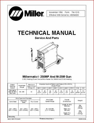Spool Guns and Controls - Red-D-Arc.com Constant current AC Arc welding power source. Genuine Miller replacement MIG parts and consumables for your Miller M-10, M-100, M-15, M-150 and M-25 MIG gun. Brand New. 1 product rating - Miller CP-200 Constant Potential DC Arc Welding w/ Millermatic 10E + Mig Guns. MIG welding gun parts/consumables for Millermatic 200 MIG welders. Spoolmate 100 Series - Miller D Reduce current or reduce duty cycle before starting to weld again. I would not replace the 4-pin receptacle in the MM200 with a 14-pin as it (the 14-pin) will not be compatible with any Miller 14-pin accessories configured as above to work with the SM3. Comes with trolley, large full COC bottle, spot welding feature, & extension cord for $1000. Here is a link for the spoolmate but it doesn't list the 200 directly. The nice thing is that it accepts Miller M-10 gun parts, A fellow at bc4x4 suggest I post my question here: I have an opportunity to buy a 89 Millermatic 200 SKP-35. Please see the picture for details- you will get the exact manual pictured. Save up to 20% when you buy more Miller Welding SPOOLMATE 150 WIRE FEED GUN Owner/Service manual,FRENCH Opens in a new window or tab. Spoolmatic 3. 14pin to 4pin adaptor do it yourself for MM 200 Receptacles are circuit breaker protected. Find your MILLER MILLERMATIC 212 AUTOSET 200/230V 60 at Grainger Canada, formerly Acklands-Grainger. Open the catalog to page 2. By Allen Moss Date 06-09-2008 02:06. Miller Spoolmate 150 The Miller Spoolmate 200 MIG Spoolgun is a highly reliable and economical spool gun with excellent feeding of aluminum MIG wrie. Miller 951684 Syncrowave 210 TIG / Stick Welder MIG Spoolmate 150 Package. Miller Electric - 243716 - HOSE,GAS INTERNAL SPOOLMATE 200 Miller Electric - 278902 - CABLE,POWER 2.0M 14GA 3C 5-15P(125V/15A) TO SDG Miller Electric - 196255 - 804 984-A / Ref. Product Compliance and Suitability. Required if using 100 percent CO. 2.