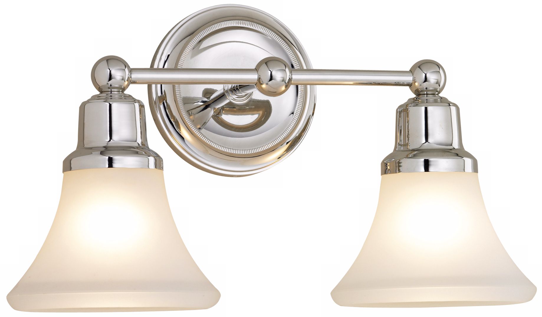 With delicate scalloped details and a classic metallic finish, this 2-light vanity adds a timeless old-world charm to your bathroom. I love these lights. It hangs from a circular backplate and an angular, curved metal arm in the finish of your choice.