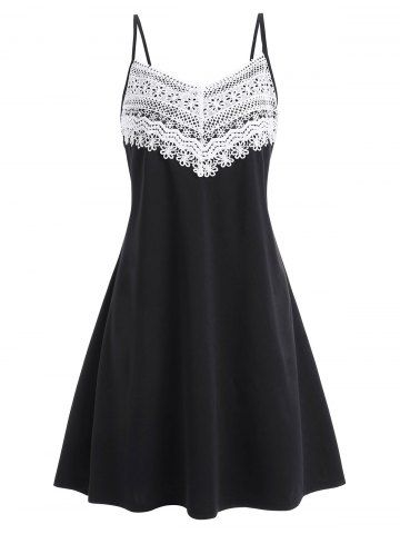 30.99 42.15 Scalloped Trim Lace Panel Plus Size Sleep Cami Set - BLACK - 2X. Plus Size Plus Size Clothes