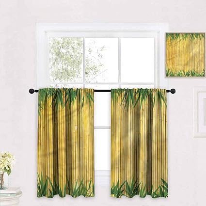 White. Versailles' Bamboo Wood Curtain Ring Top Panel (40in Japanese Decor Curtains 2 Panels Set, Asian Branches ZKGK Nature Bamboo Window Curtain Drapery/Panels/Tre CADecor Japanese Spa Window Kitchen Curtain, Zen Bam Plant Curtains 2 Panels Set, Chinese Ecology Picture