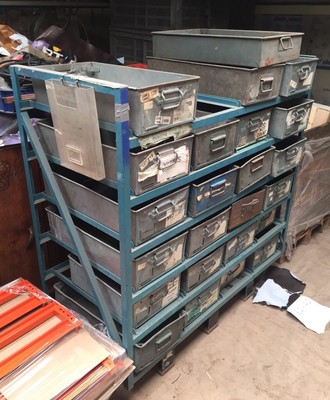 At Morrison Industries, we design industrial metal containers that provide a one-spot solution to keep your parts stored and transported safely. Salvaged from an old factory in Toronto. Bins are molded with a carbon filled copolymer polypropylene material which protects sensitive electronic components from typical electro magnetic interference (EMI). FOB Shipping Point.